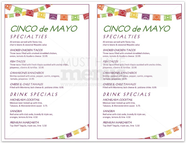 Online Menu of Cantina Cinco De Mayo Restaurant, Benton ... from image.zmenu.com From the decor of our four restaurants to the preparation of every dish, we use the traditions our parents set out for us as children. Online ordering menu for cinco de mayo bar & grill. So, if you're not coming up with a way to make this at home, you're missing the boat in your cinco de mayo party planning.